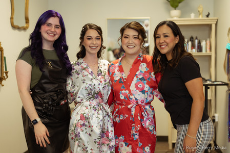 The sweetheart table was the perfect combination of rustic-chic and classic elegance. The crystal goblets, gold chargers, and candles elevated the scene, while the vignette of wildflower arrangements at the base and edges of the table, and the wood and metal construction of the table and chairs made this setting look as though it belonged in the middle of the orchard. Even the napkins perfectly tied in the dusty rose color that was featured throughout the rest of the shoot. The photographers, videographer, and models rotated between these two scenes to ensure that everyone was able to capture every beautiful detail from multiple angles and perspectives.